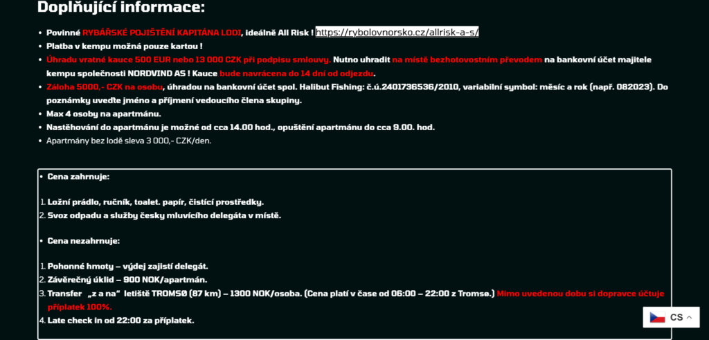 Odkaz na pojištění → https://rybolovnorsko.cz/allrisk-a-s/. Děkujeme za pochopení.
